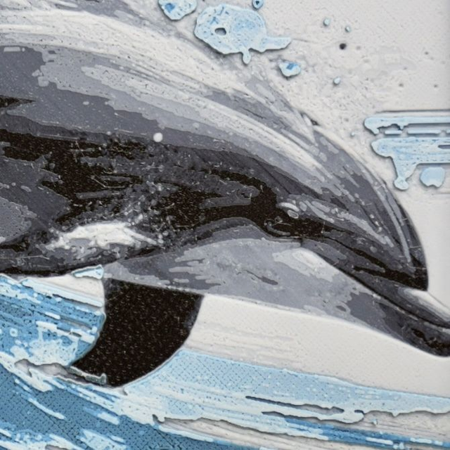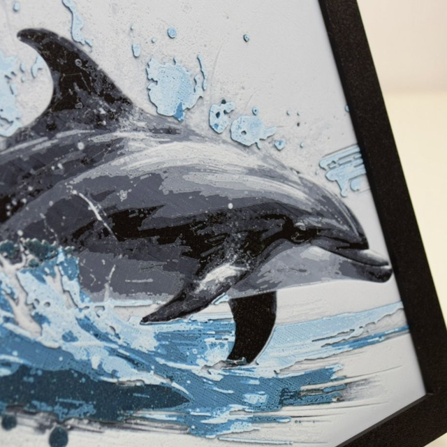 Un dauphin joue dans les vagues avec liberté et énergie. Une création idéale pour apporter fraîcheur et dynamisme à votre décoration.