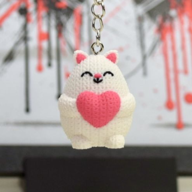 Ce petit chat amoureux imprimé en 3D façon crochet se glissera facilement dans votre poche ou dans votre sac. Un design original que vous ne pourrez pas perdre de vue !